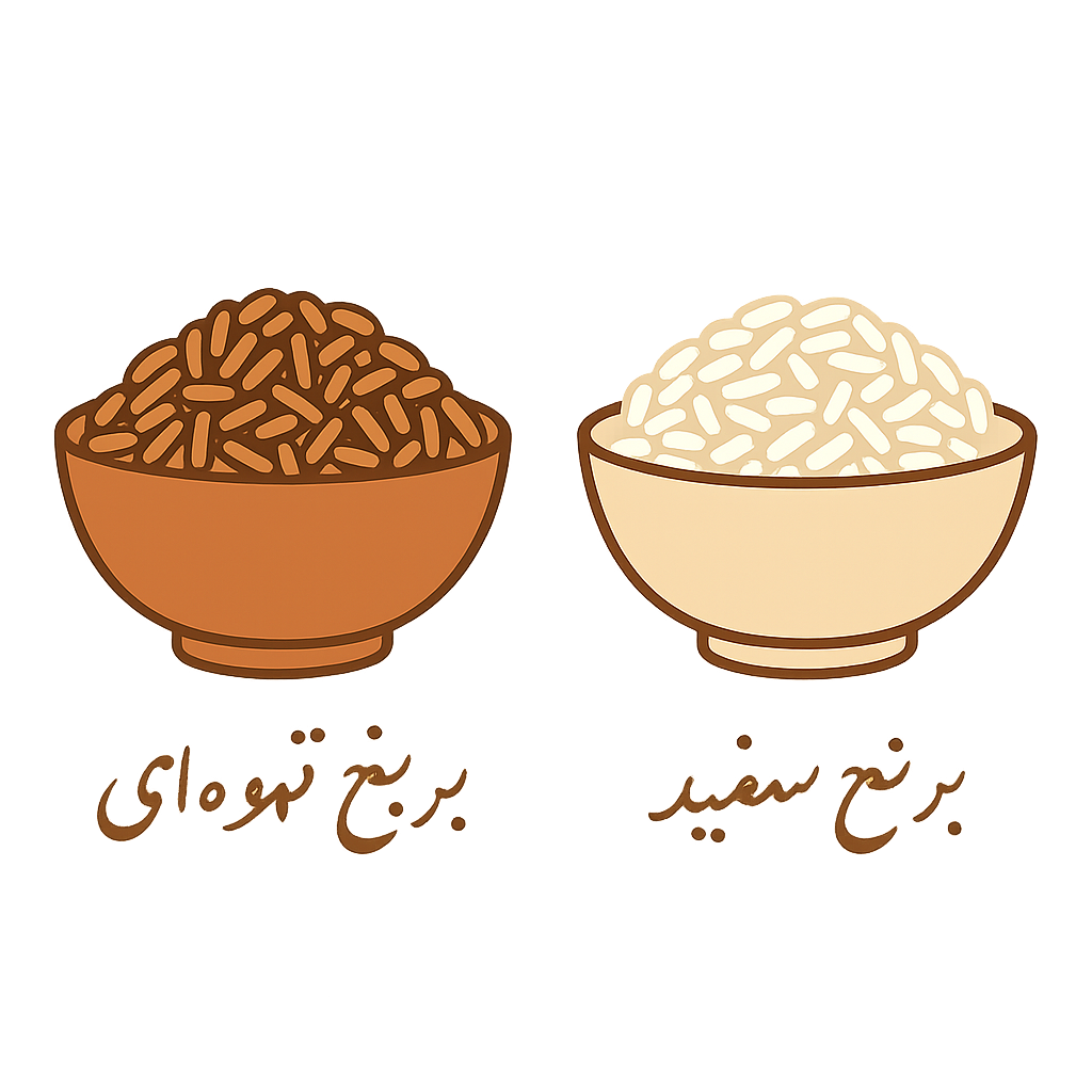 نوع برنج | طول دانه | رنگ دانه | عطر | چسبندگی |